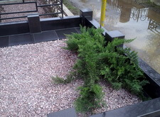 Выбранные нами цветы прекрасно будут расти все лето и осень, радовать посетителей цветами вплоть до холодов. Мы почистили крошку и досыпали новой. Хорошо помыли гранит. Результат работы ниже.
